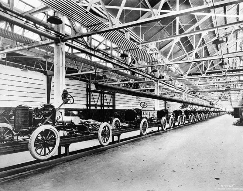 Ford revolutionized manufacturing by breaking down the process into smaller, standardized tasks. Cars moved from one station to the next, where workers performed just one part of the job.